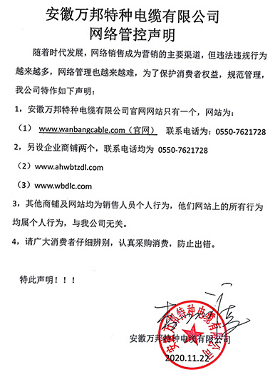 鄭重聲明:安徽萬邦特種電纜有限公司官方網(wǎng)站為:www_wanbangcable_com.cgbhina.com.cn,除此之外無任何子網(wǎng)站或合作網(wǎng)站,其余均為假冒偽劣。電話:0550-7621728 13485756353 地 址:安徽省天長(zhǎng)市滁州高新技術(shù)產(chǎn)業(yè)開發(fā)區(qū)經(jīng)四路29號(hào)